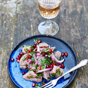 Om van dit gerecht een lust voor het oog te maken, wordt de tonijn apart bereid en fijn op smaak gebracht met citroenrasp, citroensap en basilicum.