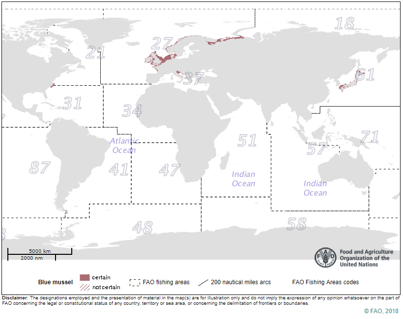 Miesmuscheln kommen im östlichen und nördlichen Nordatlantik, im Weißen Meer, im Mittelmeer und im Nordpazifik vor.