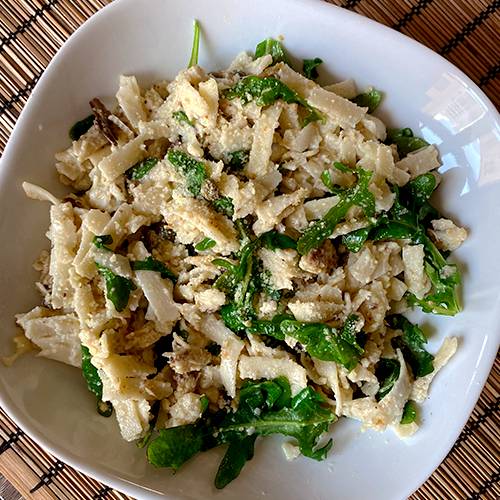 - 4 cups leafy greens (I used arugula, but you could also use spinach)
