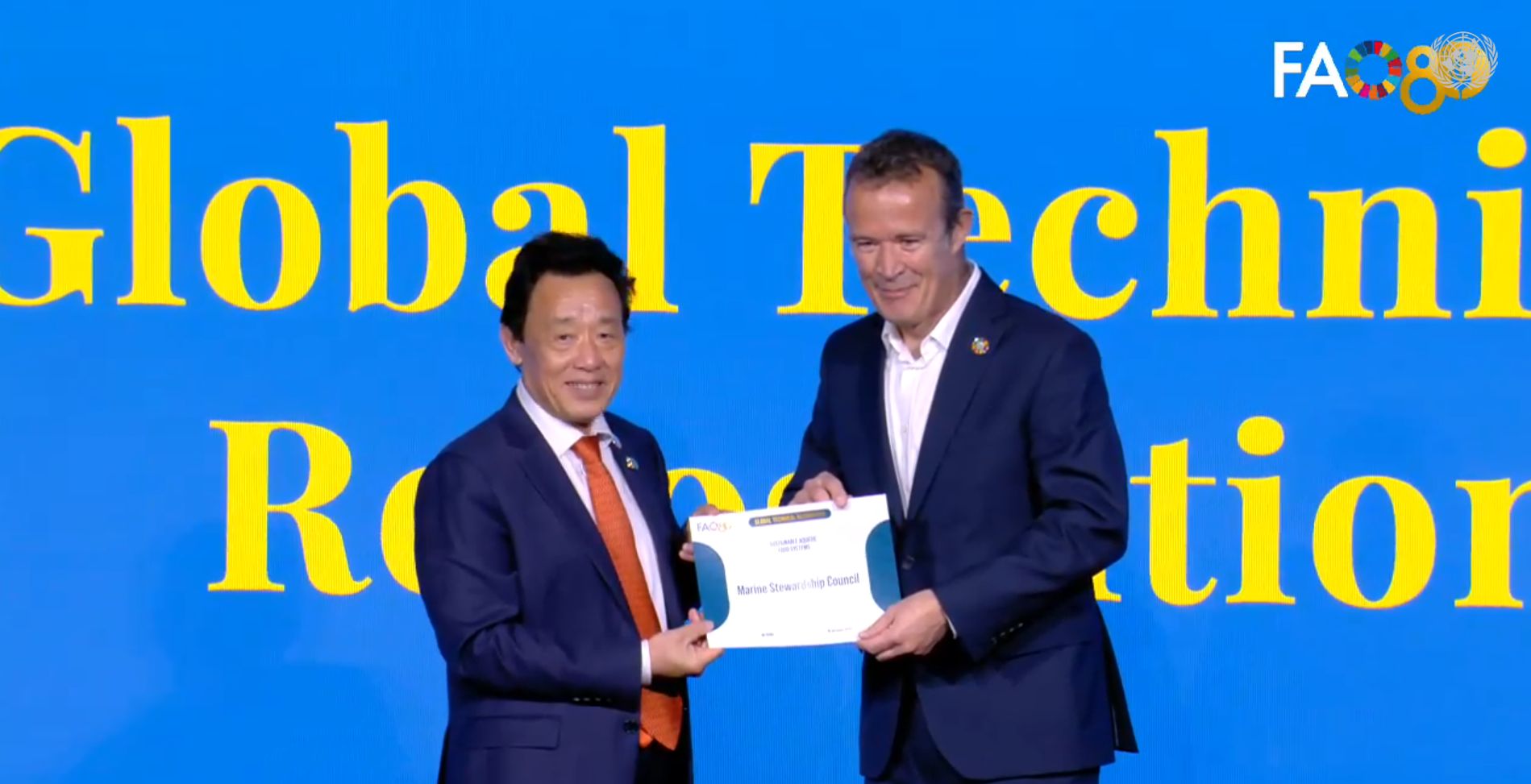 MSC Marine Stewardship Council ha ricevuto un riconoscimento dall'Organizzazione delle Nazioni Unite per l'Alimentazione e l'Agricoltura (FAO) per il suo contributo allo sviluppo responsabile e sostenibile della pesca. Il riconoscimento è stato consegnato a Rupert Howes, CEO di MSC, durante la cerimonia tenutasi il 15 ottobre nella sede della FAO a Roma.
