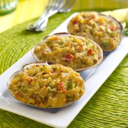 Shells that are whole enough to look nice but too damaged to become stuffed clams are often used in landscaping projects. Shells can be seen lining golf courses and walkways and adding decoration to lawns and gardens.
