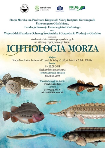 Do 28 czerwca można przesyłać zgłoszenia do udziału w 7. edycji letniego kursu ICHTIOLOGIA MORZA. Kurs skierowany jest przede wszystkim do studentów I stopnia studiów kierunków przyrodniczych. Kurs odbędzie się od 11 do 25 sierpnia 2019 r. w Stacji Morskiej im. Profesora Krzysztofa Skóry w Helu.
