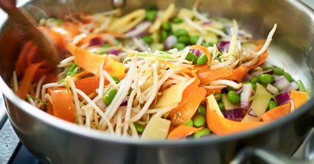 - Fry the vegetables: Heat some fat in a pan and fry the vegetables until softened and fragrant.